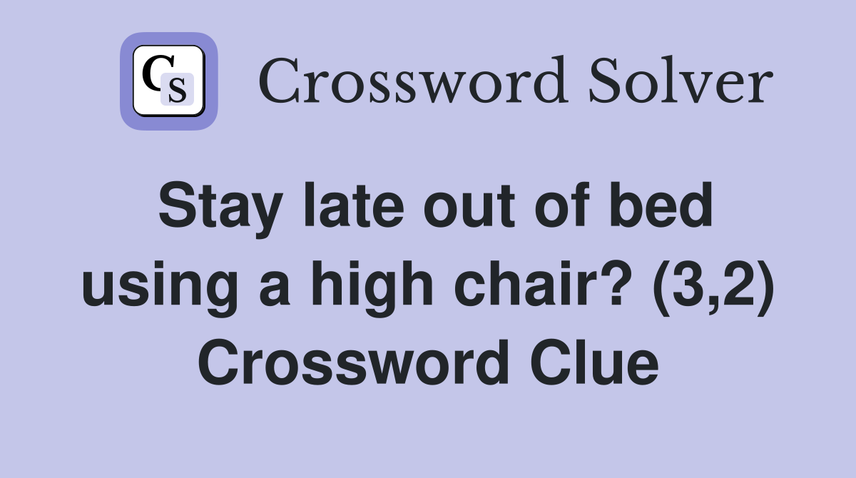 Stay late out of bed using a high chair? (3,2) Crossword Clue Answers